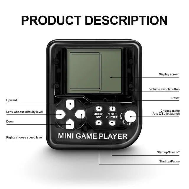 - This video game keychain has 26 classic games, each with 99 different difficulty levels.