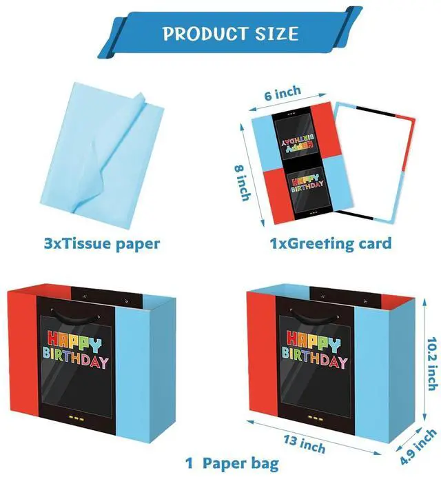 You will receive 1 large 13-inch gift bag, accompanied by 3 sheets of blue tissue paper for effortless wrapping or decoration. Additionally, you'll find 1 greeting card of the same design,providing the perfect canvas for you to express your heartfelt wishes.