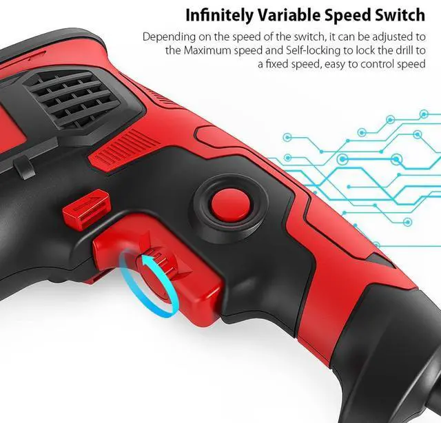 Allow you to control the drilling speed at 0-3000 rpm according to your requirements. With a lock button, you can lock the speed without constant pressure on the trigger to avoid fatigue.