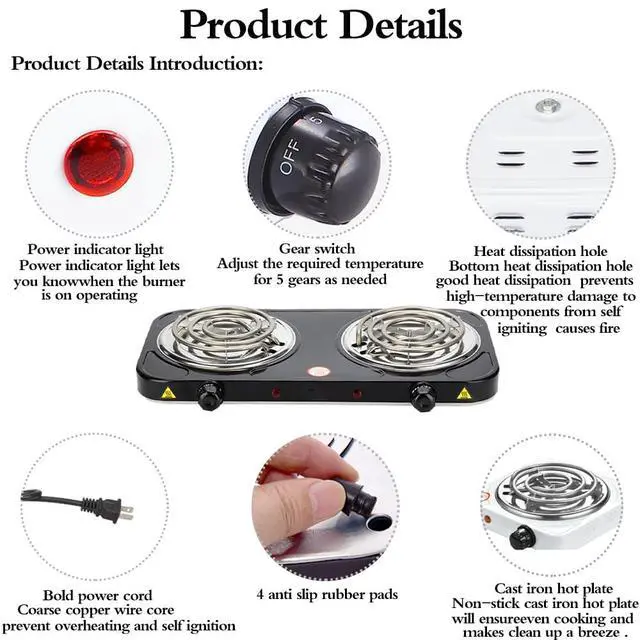 Compact and Portable Countertop Burner- Single Double Countertop Coiled/Cast Burner 1000/2000 Watts Electric Hot Plate Temperature Controls electric stove electric burner electric cooktop