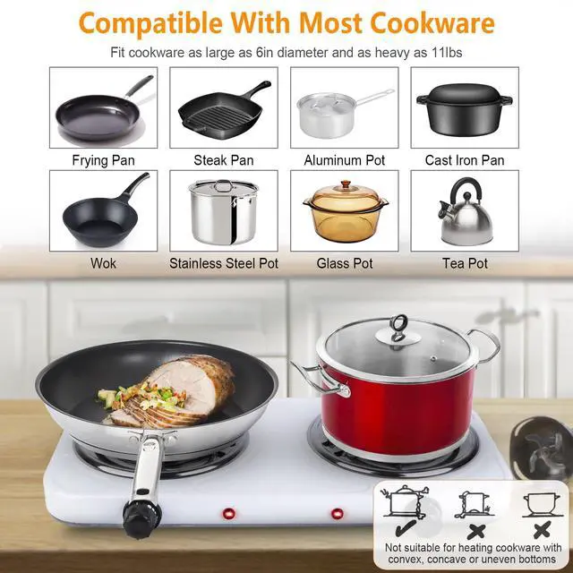 Our double burner is equipped with an overheat protection fuse that has an automatic protection setting. In addition, the 35-inch power cord is a great way to avoid danger. Non-slip rubber feet ensure that the burner is securely fastened and safe to use.