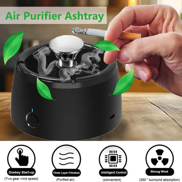 2-in-1 Clean Air Smokeless Ashtray: Our innovative ashtray combines two functions in one it serves as both an ashtray and an air purifier. Designed for indoor use, it traps ash and absorbs second-hand smoke, ensuring cleaner, fresher air. Equipped with a high-efficiency filter and a powerful fan, it effectively eliminates smoke particles, releasing purified air to protect those around you.
