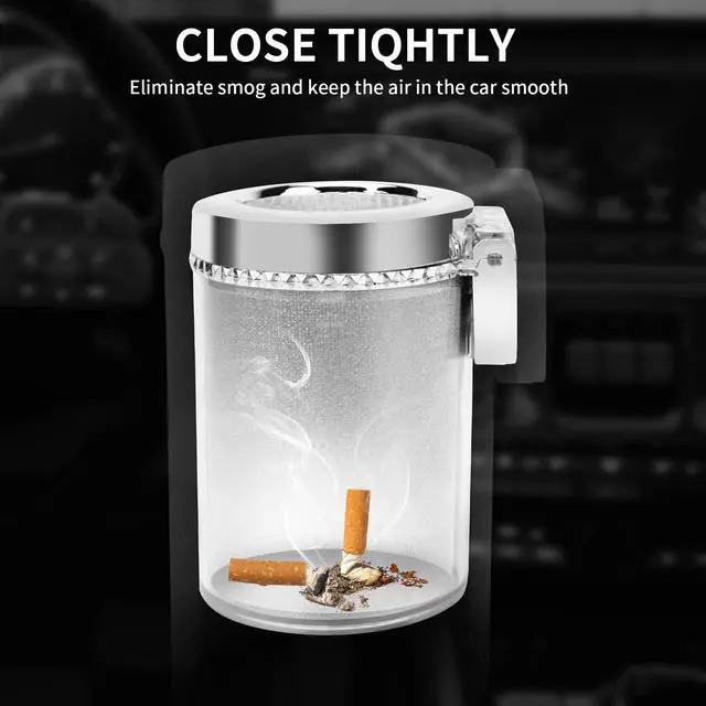 Car ashtray with lid smell proof is made and high-density fireproof material, is non-flammable, which can isolate oxygen and make the fire extinguish quickly in the interior.