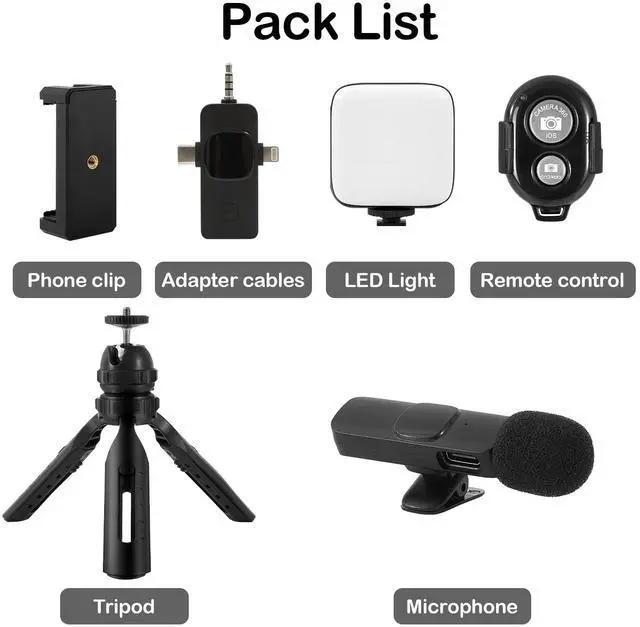 Vlogging Kit for iPhone, Android with Tripod, Wireless Lavalier Microphone, Selfie Light, YouTube Starter kit Content Creator Equipment with for Video Conference, Vlogging, YouTube, TikTok