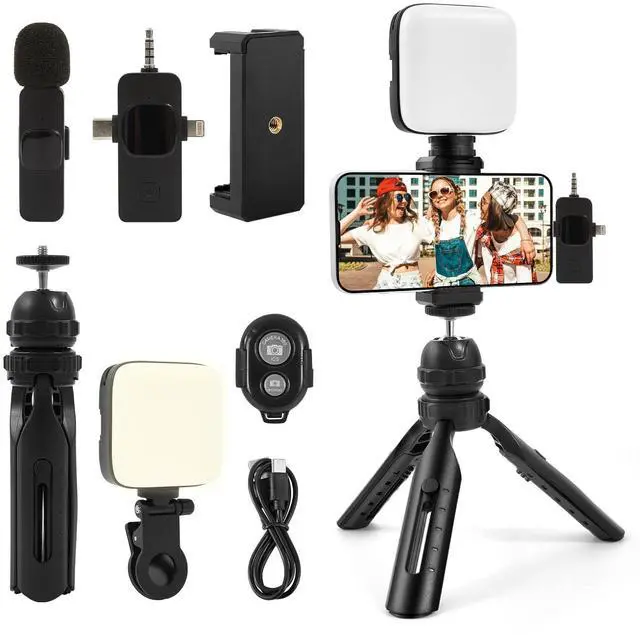 Vlogging Kit for iPhone, Android with Tripod, Soft Light, YouTube Starter kit Content Creator Equipment with Wireless Lavalier Microphone for Live Stream, Vlogging, YouTube, TikTok