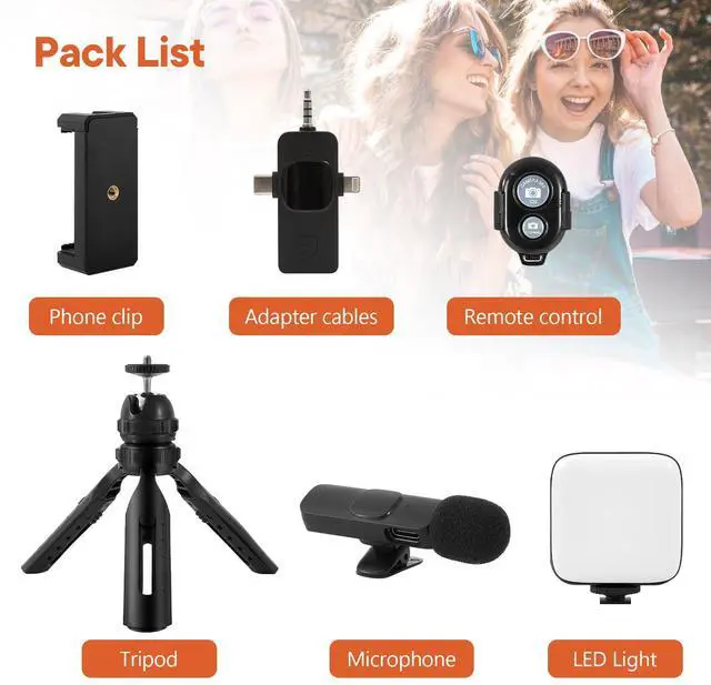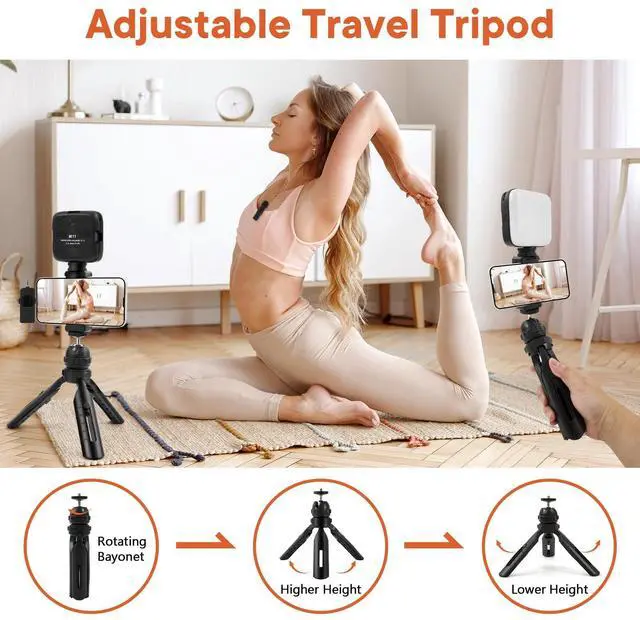 Adjustable TripodThis iPhone vlogging kit tripod is suitable for handheld use or as a desktop tripod. It offers 5-level height adjustment and features a 360° rotating ball head for flexible angle control. Easily adjust the length to suit different scenarios, ensuring versatile functionality and portability.