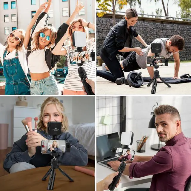 Wireless RemoteVlog Kit for iPhone and Android, featuring a wireless Bluetooth remote that pairs instantly with your phone for effortless use. This smartphone camera Vlog Kit frees your hands to effortlessly capture vibrant photos and videos, perfect for vlogging, video recording, YouTube, TikTok, and more.