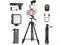 Complete Vlogging Kit: Tailored for content creators on platforms like TikTok and YouTube, this comprehensive starter kit amalgamates a selfie stick tripod, LED light, microphone, phone clip, and remote controlessential tools for vlogging, live streaming, interviews, and social media content. As your all-in-one mobile studio, it facilitates the effortless creation of high-quality content, enabling you to shoot anywhere