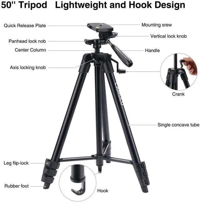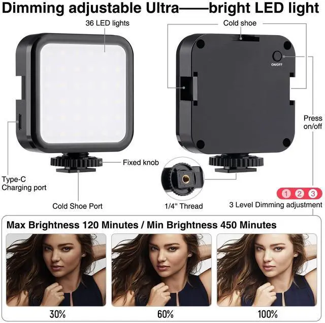 Detachable LED Fill Light: Essential for content creators, this tripod includes detachable mini LED fill lights with 3 brightness levels. Equipped with cold shoe interfaces on all sides, it seamlessly adjusts to various scenes and moods. It also supports Type-C charging for convenient on-the-go use