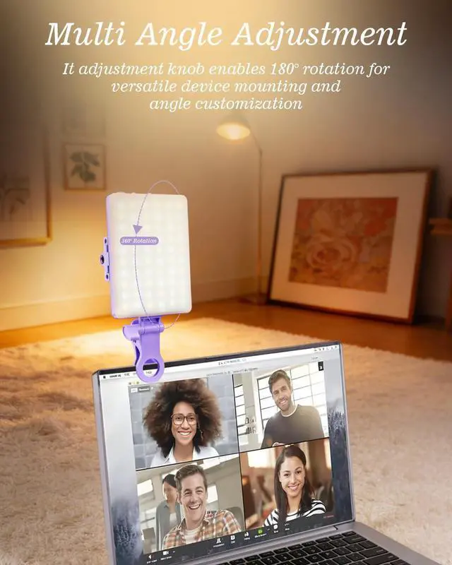 Multi-Function DesignWith 160° rotation adjustable LED light panel for precise light positioning on your mobile phone, desktop computer, laptop, or bedside, it is suitable for all scenarios that need fill light, such as mobile phone shooting, zoom lighting or reading lamp; An adapter embedded with ¼-inch thread of 180° rotatable head for cameras (hot shoe mount included), tripods, selfie sticks. Fill lighting effect is better than small selfie ring light.