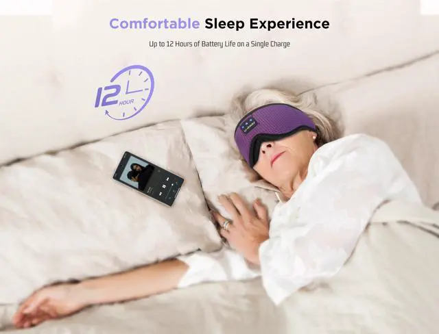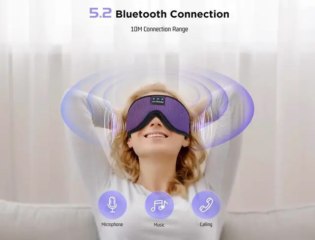 Sleep Headphones & Bluetooth Sleep Mask & Sleep Eye Mask 3 in 1Our new generation Bluetooth sleep headphones Sleep Eye Mask is the latest and unique one in the market! The bluetooth eye mask for sleeping features a soft bluetooth headband design with wireless sleep headset inside, allow you to enjoy hands free music, and protect you from being disturbed by your mess hair and sweat. Bluetooth sleep mask is perfect suitable for Nap,Insomnia, Air Travel, Meditation,Yoga as well as sleeping