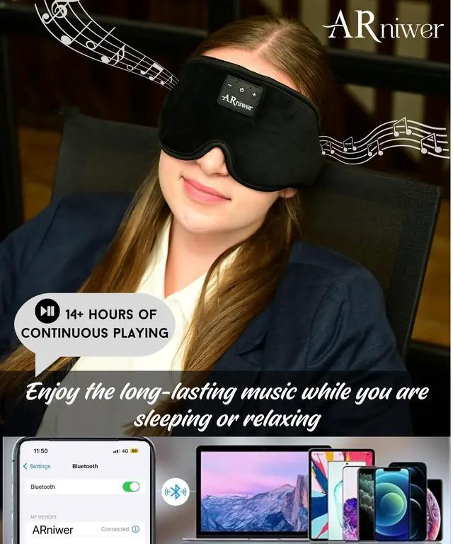 The ARniwer Bluetooth music eye mask is made of real ice silk. It can effectively blocks light, allowing you to fall asleep very quickly, stay asleep, and have a good sleep quality. In addition, you can also enjoy the music while relaxing, sleeping, or resting.