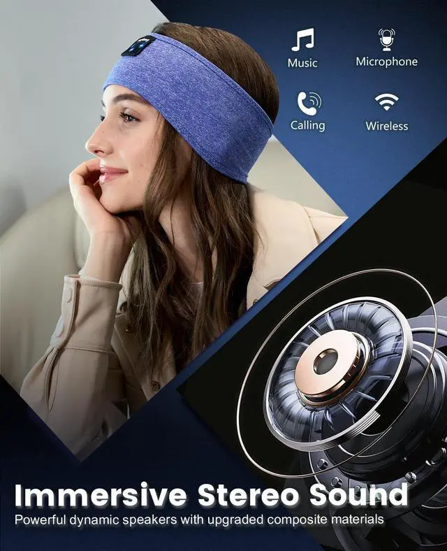 This innovative 3-in-1 sleep headband headphones bluetooth wireless combines premium audio with ultimate comfort. Featuring ultra-thin HD stereo speakers, Bluetooth 5.4 connectivity, and 10-14 hour battery life, it's crafted from soft breathable, machine-washable fabric with removable speakers. Perfect for Side sleepers seeking comfortable audio, Travelers wanting compact essentials, Meditation practitioners desiring peaceful immersion, Office workers needing discreet relaxation. Transform how you sleep, move, and relax with this versatile audio companion that adapts to your every need. Perfect for sleeping nap running jogging calling cycling travel airplane and have a deeper sleep.