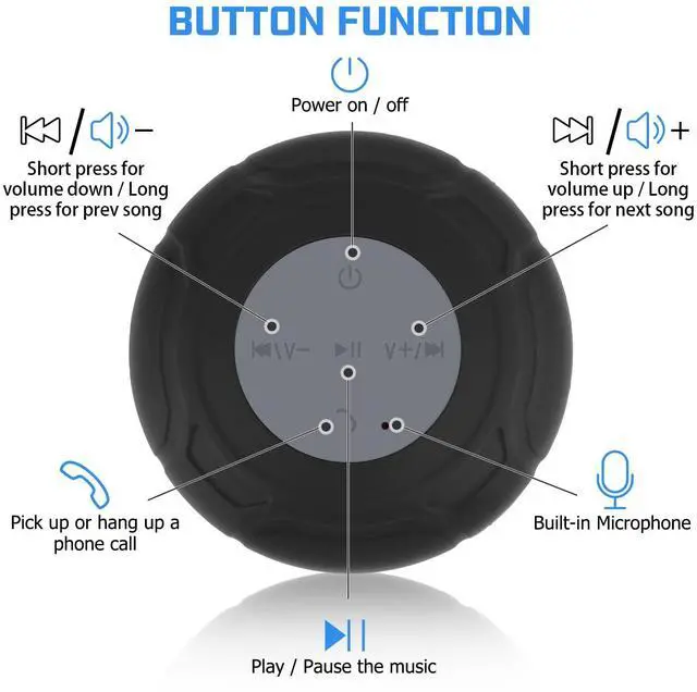 Waterproof shower speaker protects against water spray and splash away,So you can enjoy the music to the fullest in the shower.