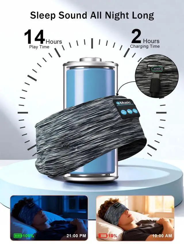 All-Night Battery Life & Fast Recharge: Enjoy over 14 hours of continuous playback on a single chargeplenty to carry you through a full night of soothing music, calming podcasts, white noise, or audiobooks. With quick-charge capability, your sleep headphones are ready when you are, offering peace of mind whenever you need them