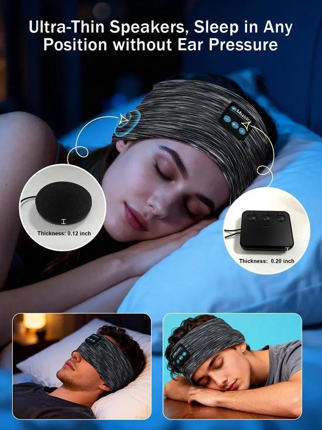 Sleep Headphones for Side Sleepers: Designed with care for all-night comfort, our soft wireless headband features ultra-thin, cushioned speakers that gently rest near your earsnever pressing or poking. Enhanced internal pockets keep the speakers perfectly aligned, no matter how much you toss and turn. Ideal for side sleepers seeking a cozy, comfortable alternative to earbuds or bulky headphones