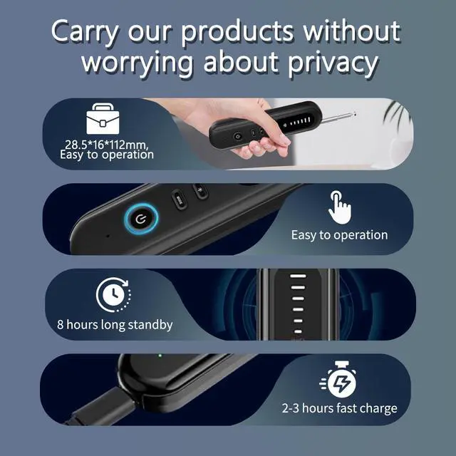 Easy to carry: The Listening Device Detector weighs only 34g and its extremely small size of 28.5*16*112mm allows you to carry it anywhere, whether in your pocket or wallet, to protect your privacy at any time