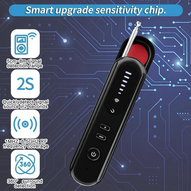 Powerful detection capability: Hidden Camera Detectors detection frequency range is 1MHZ~6.5GHZ. Detection range: 5cm~15m. Scanning speed up to 2000 times/second. Quickly identify eavesdropping devices, pinhole cameras and GPS locators without worrying about privacy leaks