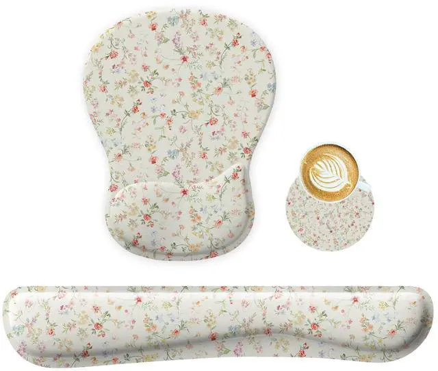 Wrist Rest Support for Mouse Pad Keyboard Set Circle Coaster Gaming Mouse Pad Ergonomic Gel Memory Foam Set