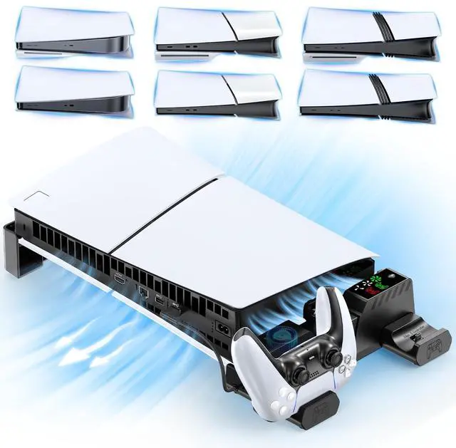 Scalable Design for All PS5 Models This PS5 cooling fan horizontal features a scalable design for perfect compatibility with all PS5 models2020 PS5 Disc & Digital Edition, 2023 PS5 Slim Disc & Digital Edition and 2024 PS5 Pro Disc & Digital Edition. Its adaptable structure meets the placement needs of different PS5 generation, offering excellent compatibility.