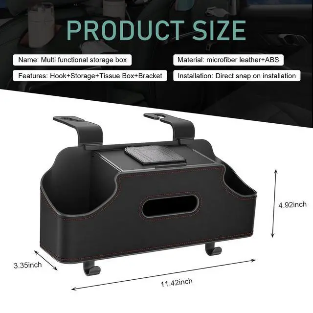 3.No need to remove the headrest; the box can be easily installed using a semi-open hook, making daily use more convenient.