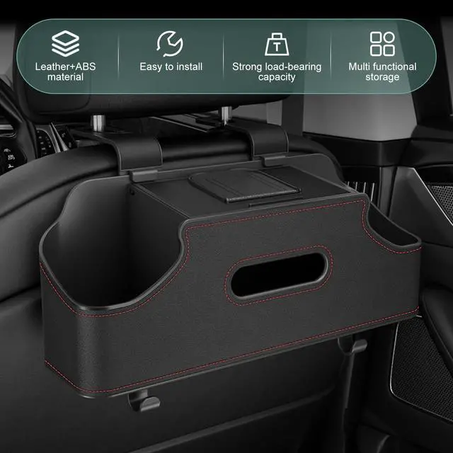 1.The rear seat storage box is made of leather and ABS material, providing a multifunctional storage space to keep the interior clean and tidy.