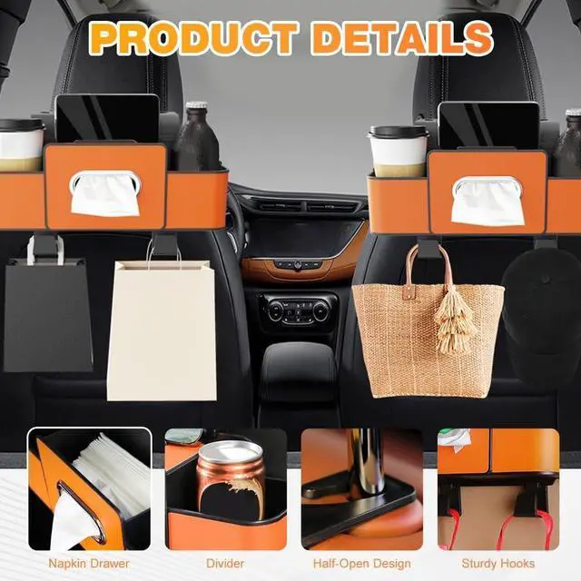 Innovative Tissue HolderThis 3-in-1 car backseat organizer features a unique tissue box compartment and cup holder, making it easy to access tissues and drinks while driving. It's incredibly convenient and practical, providing a neater storage space for travel or everyday use