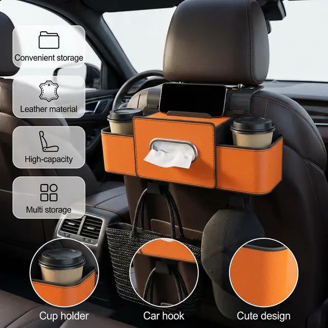 3-in-1 Backseat Car Organizer with Dual Cup Holders, Tissue Box & Phone Holder, 2026 Upgraded Car Seat Back Storage Box, Multifunctional Waterproof Storage for Daily Driving & Travel, Brown