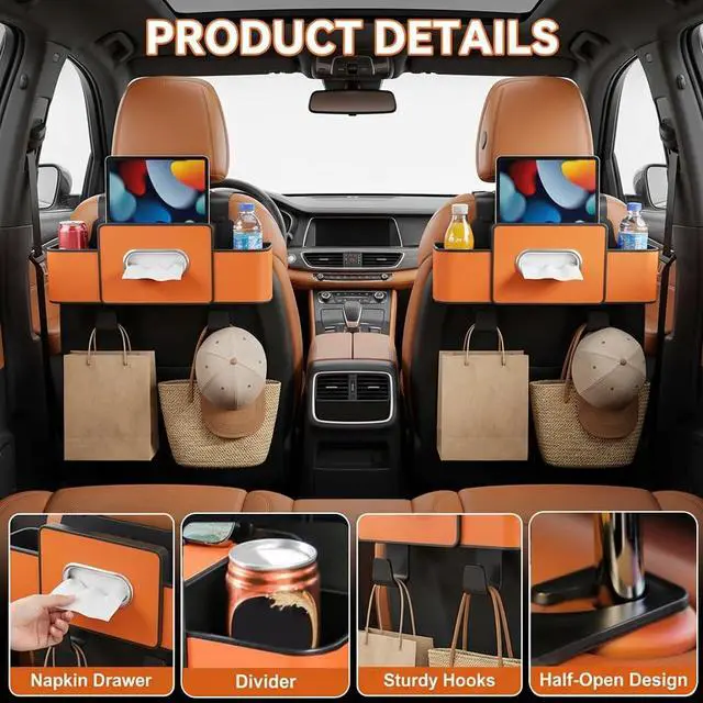 Premium Leather & Durable Craftsmanship Crafted from high-quality, scratch-resistant leather with a shockproof suede lining, this backseat car organizer adds a touch of elegance to your car interior accessories. The waterproof material is exceptionally easy to wipe clean, while the reinforced internal structure prevents rattling noises even on bumpy roads, offering long-lasting durability for daily commutes.