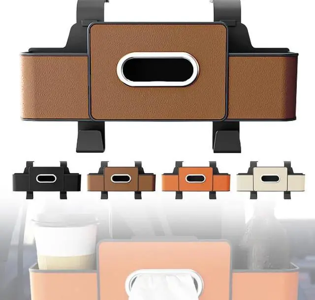 3-in-1 Backseat Car Organizer with Dual Cup Holders,Tissue Box & Phone Holder, 2026 Upgraded Car Seat Back Storage Box,Multifunctional Waterproof Storage for Daily Driving & Travel,Brown
