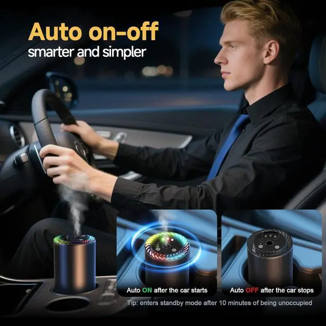 Automatic Switch-Off & Easy to Use: The smart car air freshener intelligently detects vehicle motion. It automatically turns on when you get in the car and enters standby mode 10 minutes after you exit, stopping fragrance release. This hassle-free design ensures efficiency and energy saving for daily use with your car air freshener diffuse