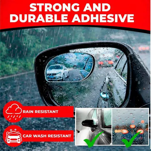 Outdoor rated and industry's best adhesive so mirrors won't fall in cold weather, car wash, or in exposure to salt water.