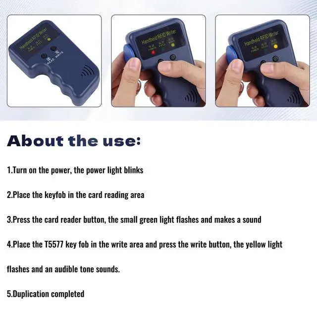 - Before use, please first write the data (card number) into the blank T5577 keyfobs with a 125KHz card writer.