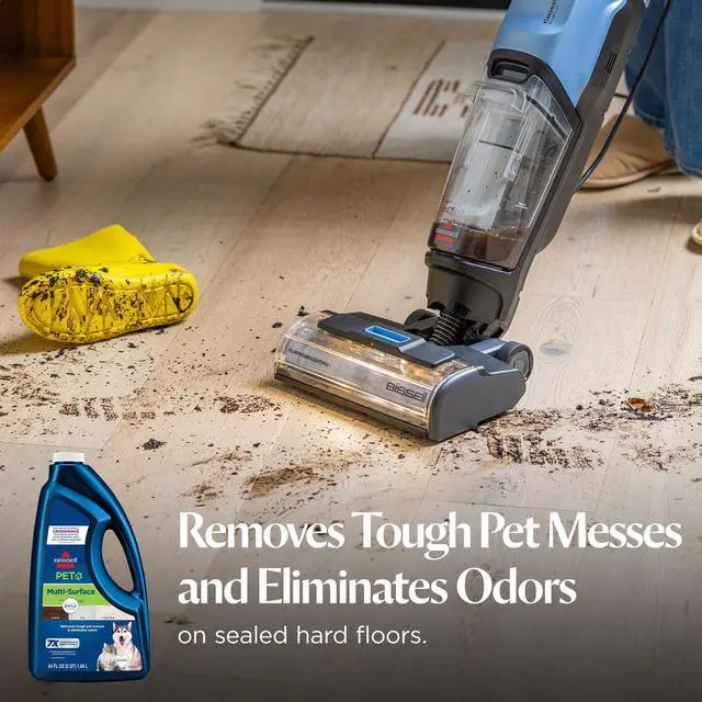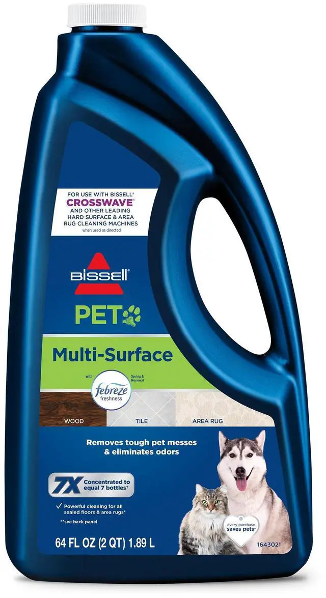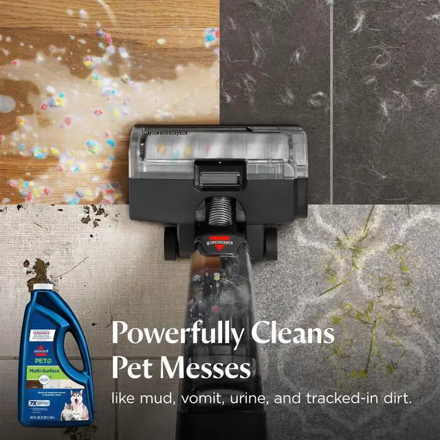 BISSELL CrossWave Pet Pro OXY Multi-Surface Formula is the ONLY multi-surface formula with oxy action to break down stain & odor compounds to remove pet messes.