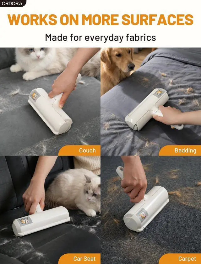 Made for Pet Hair on Everyday Fabric Surfaces This manual pet hair remover is designed to pick up dog hair and cat hair from common fabric surfaces such as couches, sofas, bedding, rugs, carpets and fabric car seats. It is a practical pet hair removal tool for pet households that deal with daily shedding.
