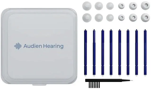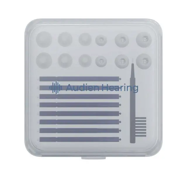 COMPLETE ACCESSORY PACK - This hearing aid accessory set is compatible with Atom One. Designed to support daily care for Audien Hearing hearing aids, this set includes essential accessories to help keep your device clean, organized, and ready to use.