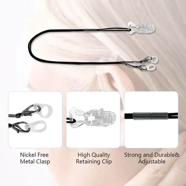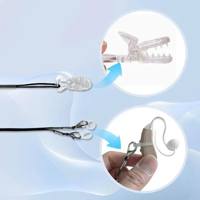 Keeping the hearing aid attached to the cord in the event that the hearing aid falls off. Hearing Aids Clip Protection Portable Anti-Lost Rope BTE Holder Protector made of ABS and nylon material, high-quality and durable. Hearing Aids Clip includes 2 lanyard, 2 safety clip, 1multifunction cleaning brush,1 cleaning brush,4 silicone loops and 1 storage case. The hearing earing aid clip can be used to and fix your hearing aids to prevent getting lost.