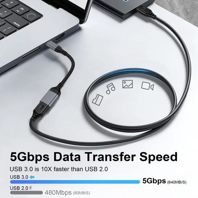 usb a to usbc adapter delivers USB 3.1 Gen 1 speeds up to 5Gbps, 10× faster transfer rates versus USB 2.0.