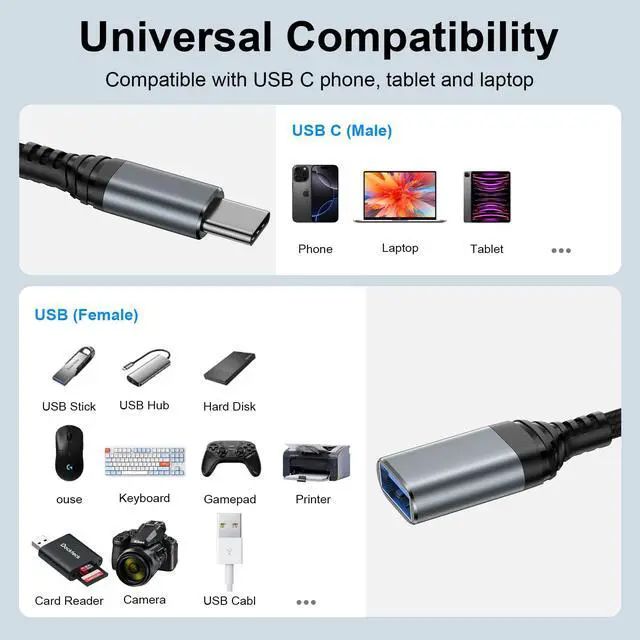 usb to usb c adapter seamlessly interface with HDDs (hard drives), flash drives, wireless keyboard, mouse, cameras, and game controllers.