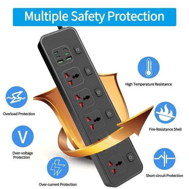 In addition to other safety protectors, the power strip is designed with a safety door, so protect from electric shock; pressure switch, it is a littler hard to press the switch to "open".