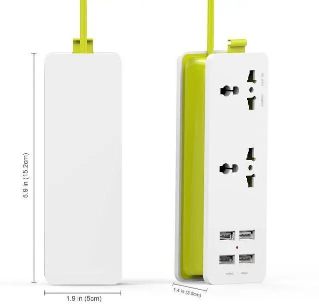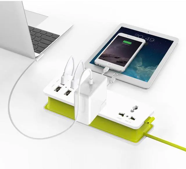 This product equipped with 2 universal sockets and 4 USB ports,can charge your tablet and cellphone at the same time,