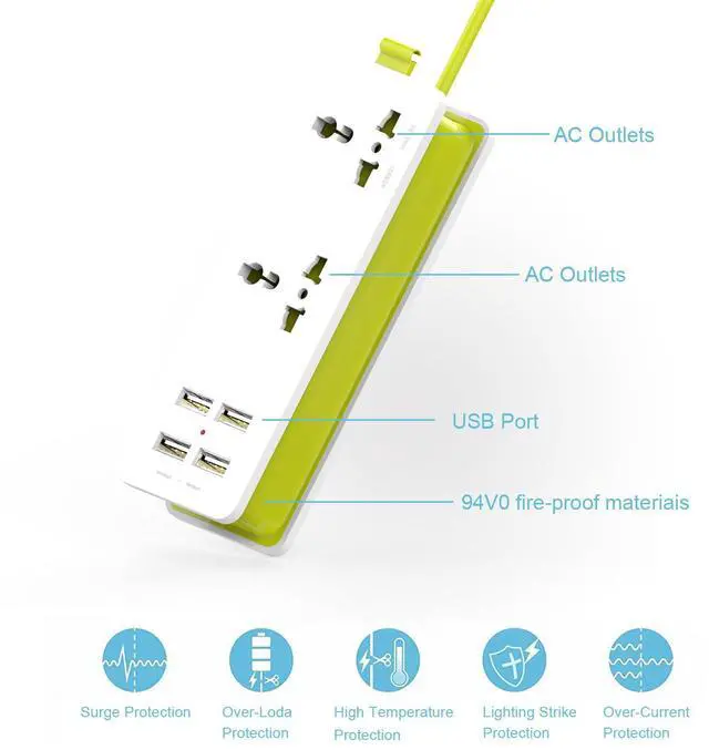 Outlet Quantity: 2 AC outlets plugs +4 USB ports