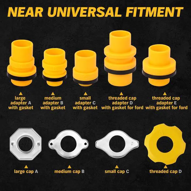 The universal fitment :5 Adapters with Gasket,4 Filler Caps.