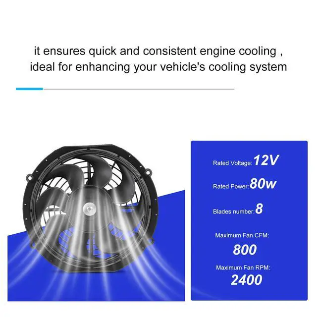 - This radiator cooling fan is ideal for cars, trucks, SUVs, and ATVs. Available in 8", 10", 12", 14", and 16" sizes.