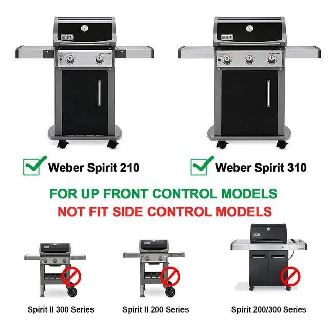 Fits for Weber Spirit 200 Series with "Up Front" controls (Model years 2013 and newer), Weber Spirit E-210 (2013 - 2016), Weber Spirit E-220 (2013 - 2016), Weber Spirit S-210 (2013 - 2016), Weber Spirit S-220 (2013 - 2016).