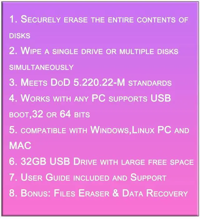 - To wipe disks, user needs to follow print user guide and boot your PC from this USB drive.
