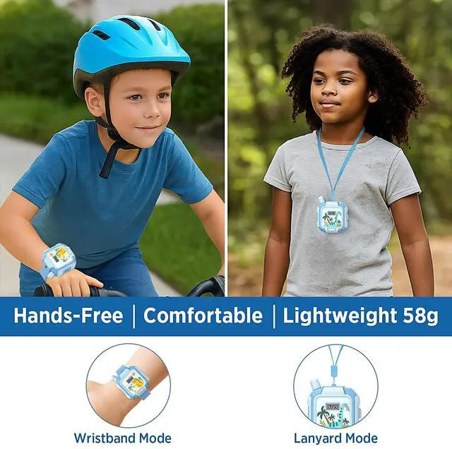 Hands-Free Wearable Design, Easy for Kids: Wear it on the wrist like a watch or hang it around the neck with the included lanyard. Lightweight at only 58g, comfortable for all-day play. Simple press-to-talk operation makes it easy for kids ages 312 to use independently.