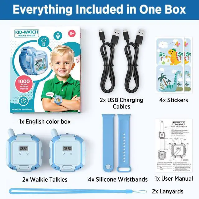 Rechargeable Walkie Talkies Toys for Kids, Hands-Free Walkie Talkie Watch Toys for Boys Age 3-12 with 3274FT Range, Wearable Wrist & Lanyard, Outdoor Toys for Camping, Hiking, Birthday Gifts (Blue)