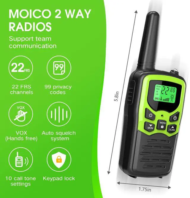Simple, compact and easy to use by the entire family and outdoor events. The MOICO walkie talkies are PERFECT for just about any activity where you need to talk to someone while you're out on some adventure.