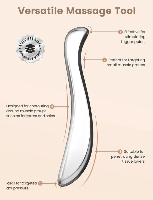 Metal Massage kit, Stainless Steel Body gua sha Tool, Pressure Point Trigger Point Massage Tool for deep Tissue Pain Relief, Muscle Scraper Tool for Fascia Release, Lymphatic Drainage Massager